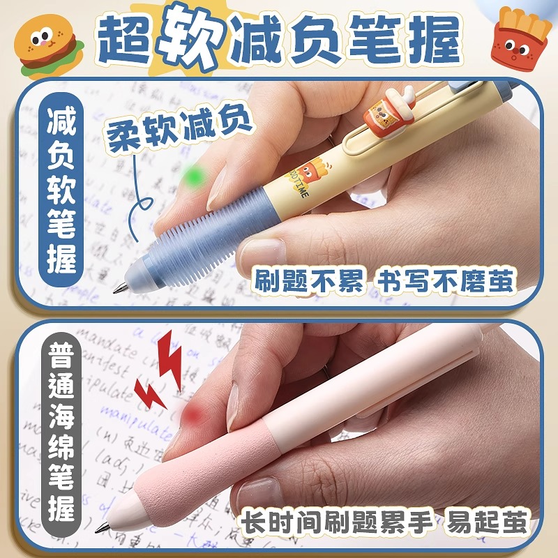汉堡贴片减负按压可擦笔软握高颜值创意热敏可擦笔按动水笔可爱小学生专用三年级热可擦笔黑色晶蓝笔芯