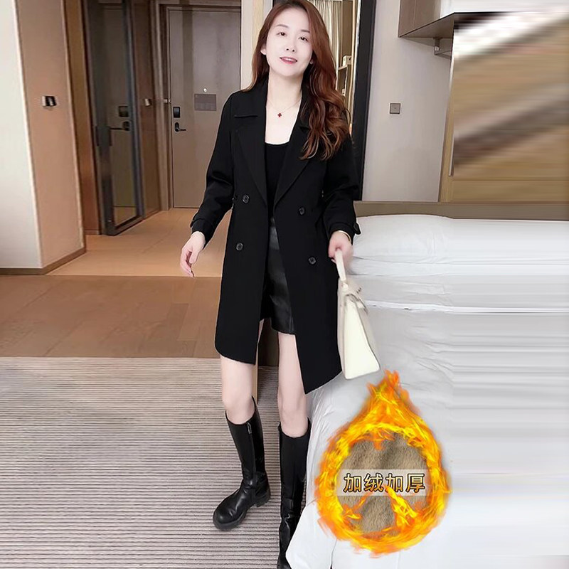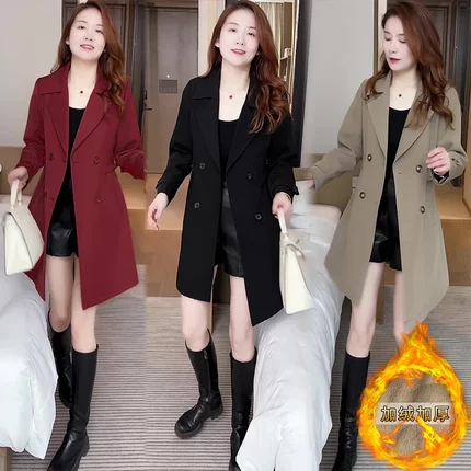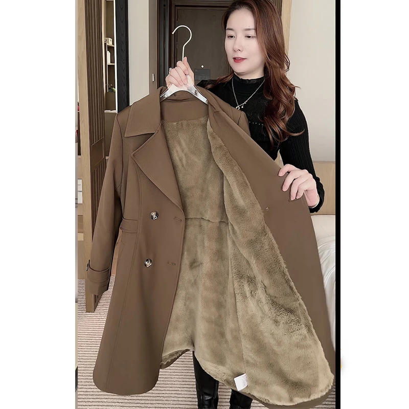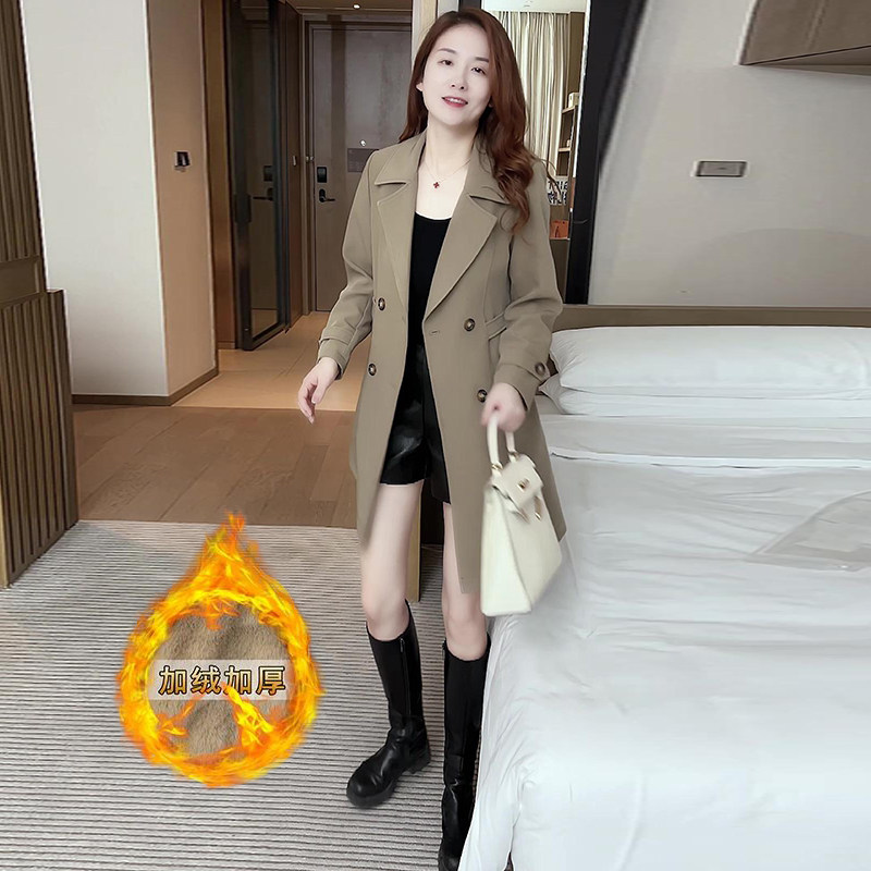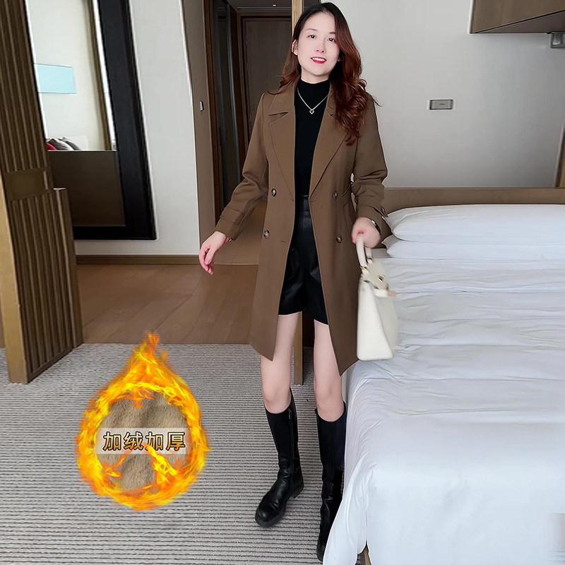 时尚收腰显瘦中长款风衣外套女冬季新款韩版气质加绒加厚保暖上衣