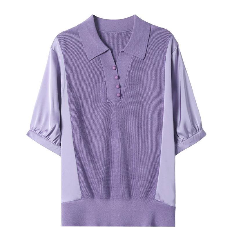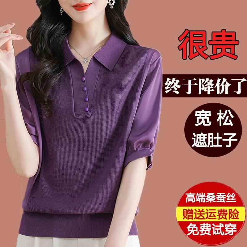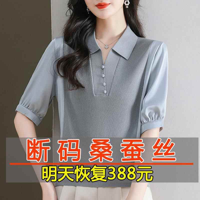 桑蚕丝短袖t恤女2025新款爆款妈妈夏装洋派polo领针织衫真丝上衣