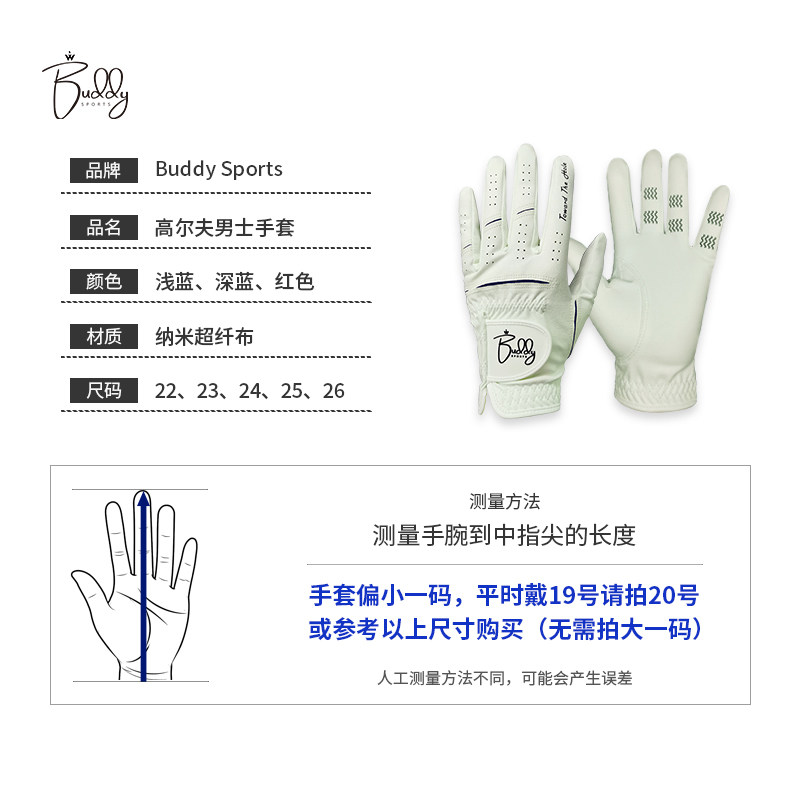 高尔夫手套可触屏高尔夫手套男透气防滑耐磨男高尔夫球手套深蓝25
