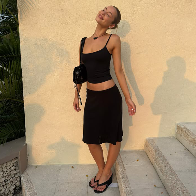 纯色基础款吊带背心+鱼尾半身裙两件套2025夏季穿搭辣妹休闲套装