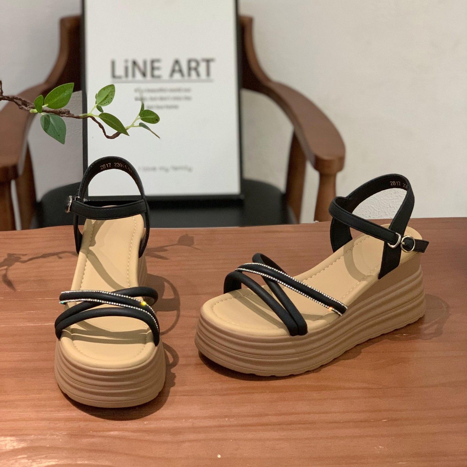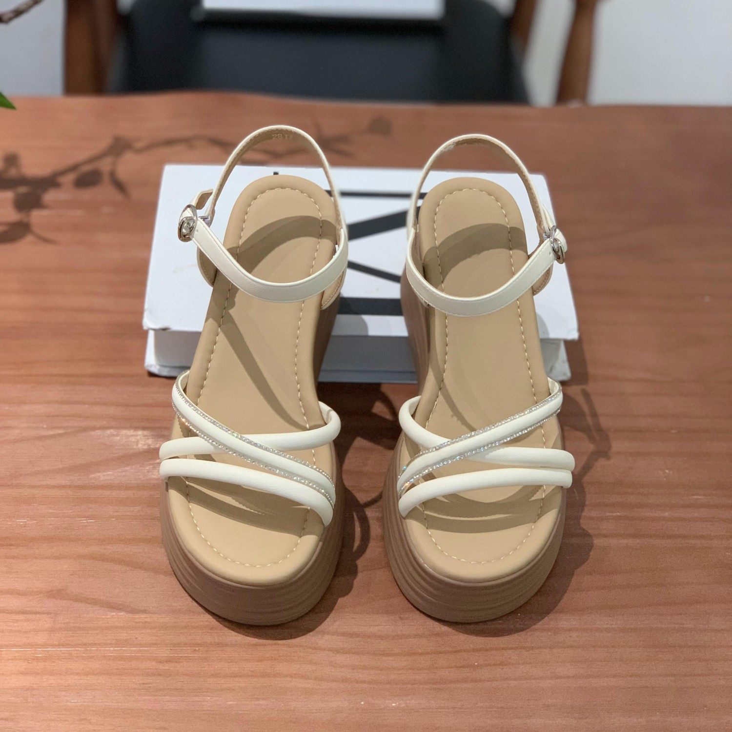 时尚坡跟厚底舒适轻便一字带凉鞋