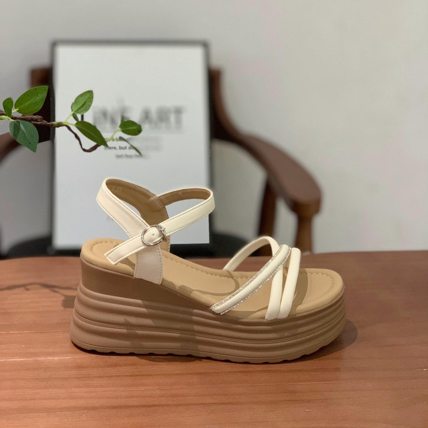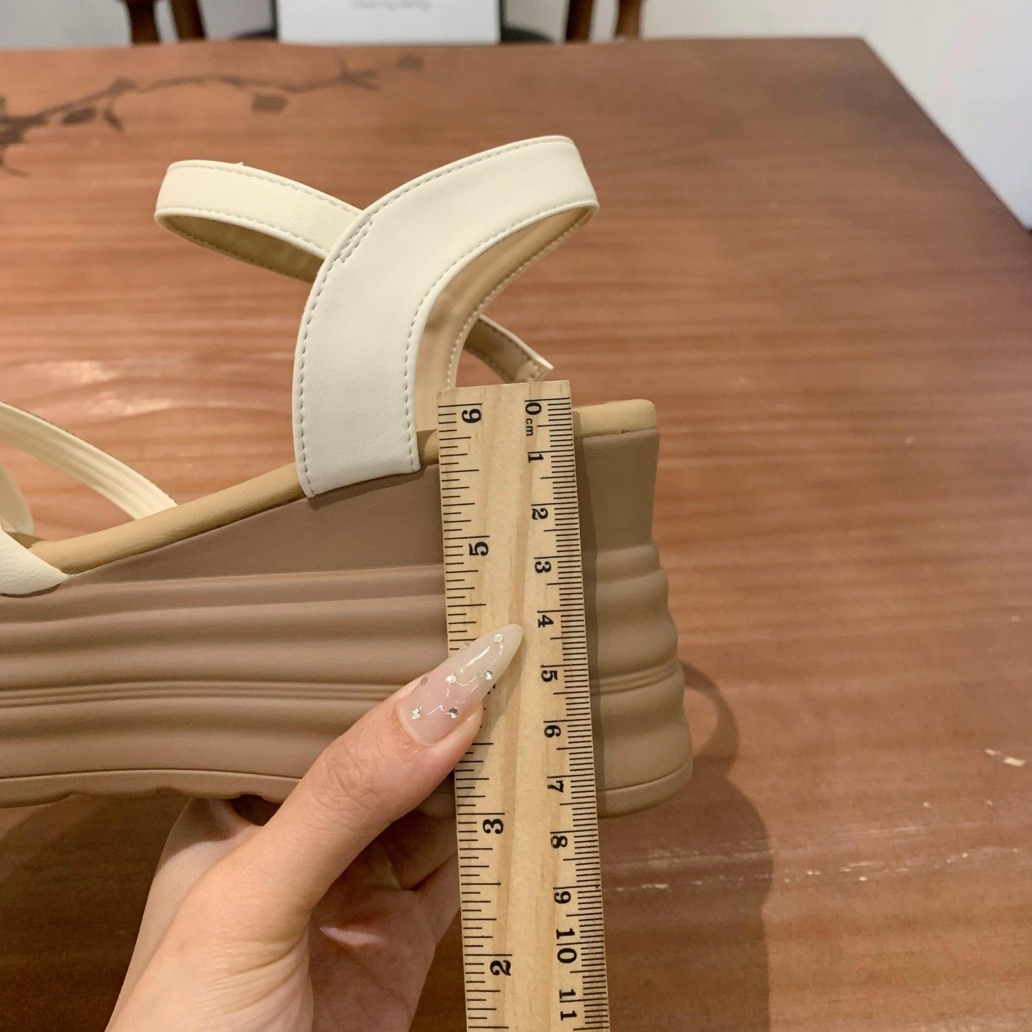 8CM坡跟厚底一字带凉鞋女2025夏季新款小个子增高显腿长外穿凉鞋