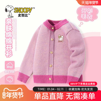 史努比女童针织开衫儿童秋装2026新款秋季上衣女孩春秋款毛衣外套