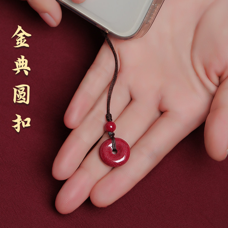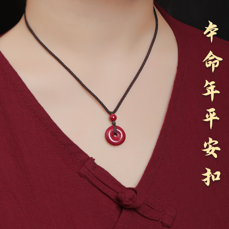 正品天然朱砂小平安扣吊坠女项链马年本命年饰品紫金砂钥匙扣挂件