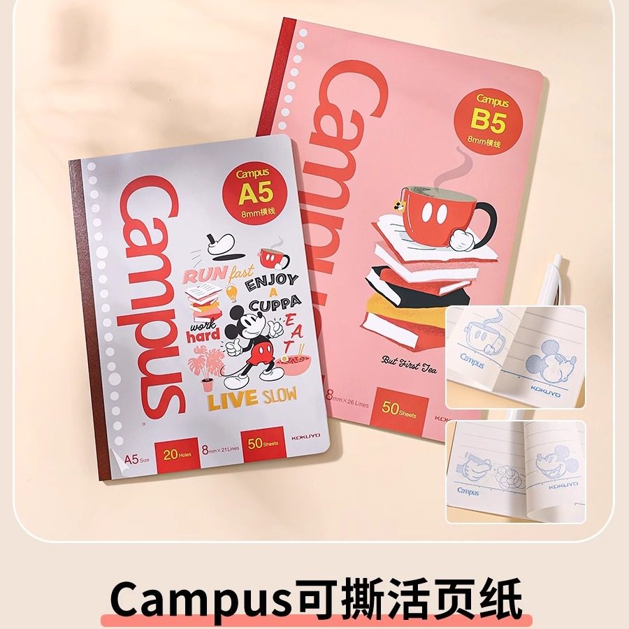 新品KOKUYO国誉迪士尼活页本联名文具新款学生用B5A5不易咯手文具高颜值原纸色同款可撕活页纸喜笑欢颜