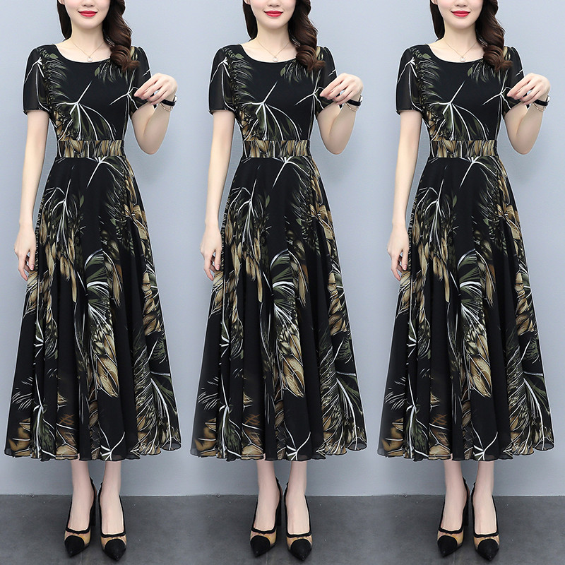 2024年夏季新款冰丝碎花气质连衣裙女妈妈装大码显瘦遮肚过膝长裙