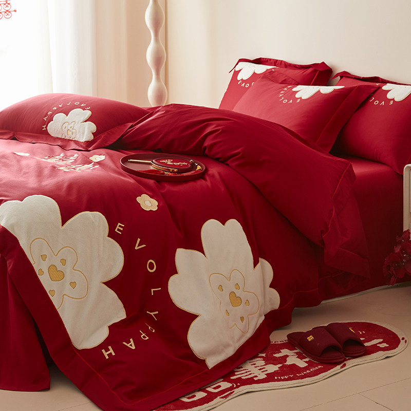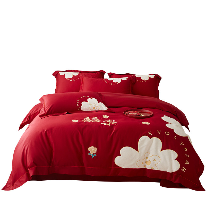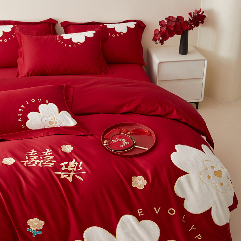 中式红色结婚四件套不掉色不起球