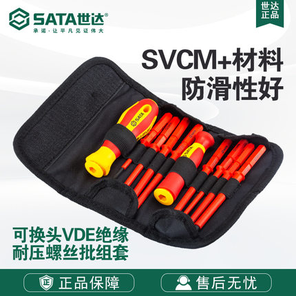 世达SATA工具10件可换头VDE绝缘耐压螺丝批组套螺丝刀套装 09304
