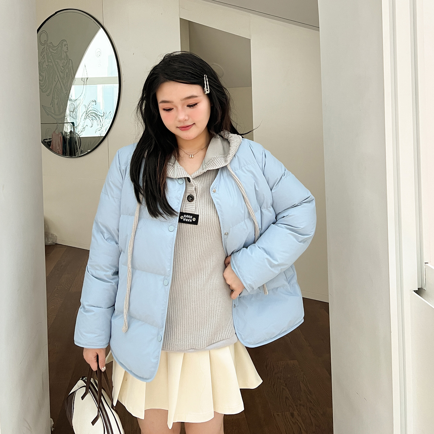 DM100大码百分百微胖mm女装冬季保暖宽松圆领正肩棉服短款外套