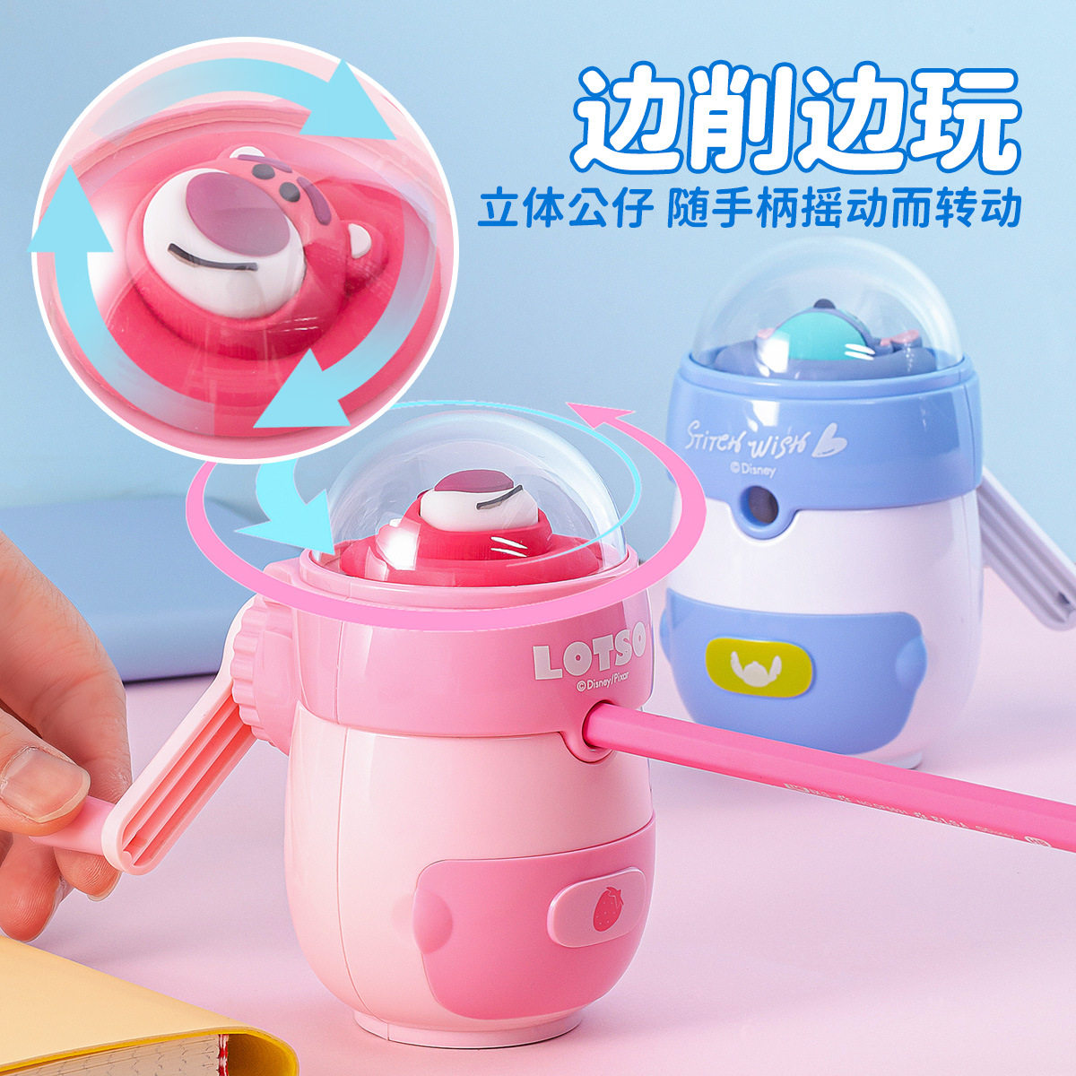迪士尼草莓熊蜘蛛侠卡通手摇削笔器自动进铅削笔刀卷笔刀转笔刀