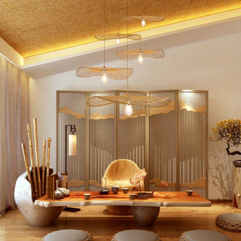竹编组合吊灯创意个性中式装饰餐厅大厅茶室民宿复式楼梯三头灯具
