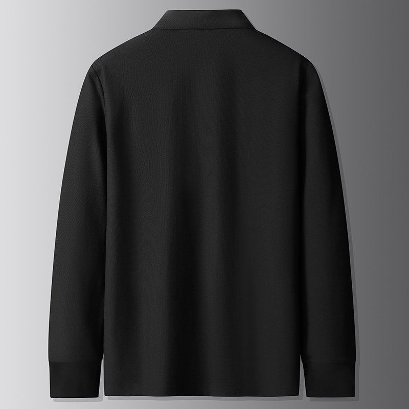 春秋加大码男式纯色丝光棉长袖POLO衫大号宽松弹力纯棉打底体恤衫