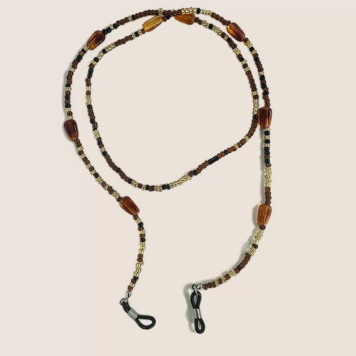 美拉德风眼镜链麦承欢奶奶同款老花镜链琥珀色串珠墨镜链绳气质款