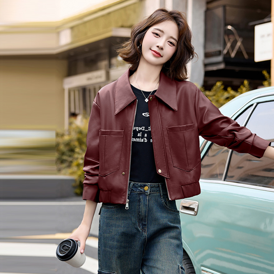 美式复卡其色pu皮衣外套女2025春秋季新款小个子短款机车夹克上衣