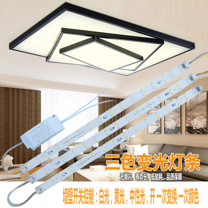 led吸顶灯长条灯条改造灯板条线灯带 管灯盘双色三色变光贴片家用