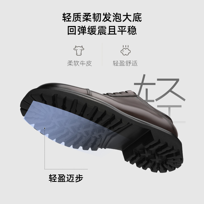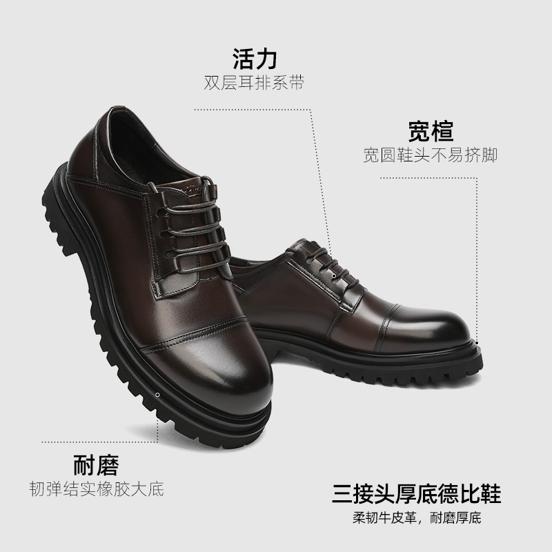 金利来男鞋新款透气圆头商务休闲皮鞋男士厚底真皮增高德比鞋男款