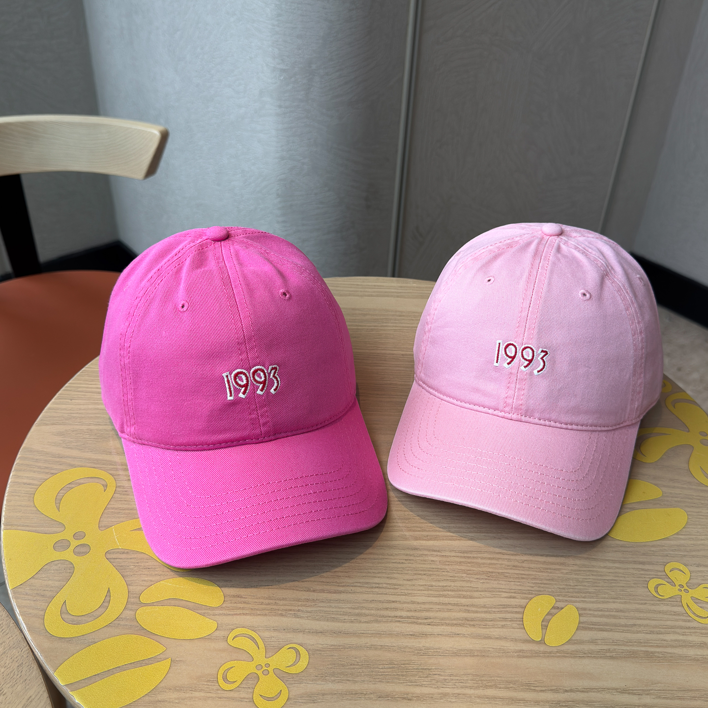 高品质四季款街头粉色棒球帽1993刺绣男女同款韩版玫红色鸭舌帽子