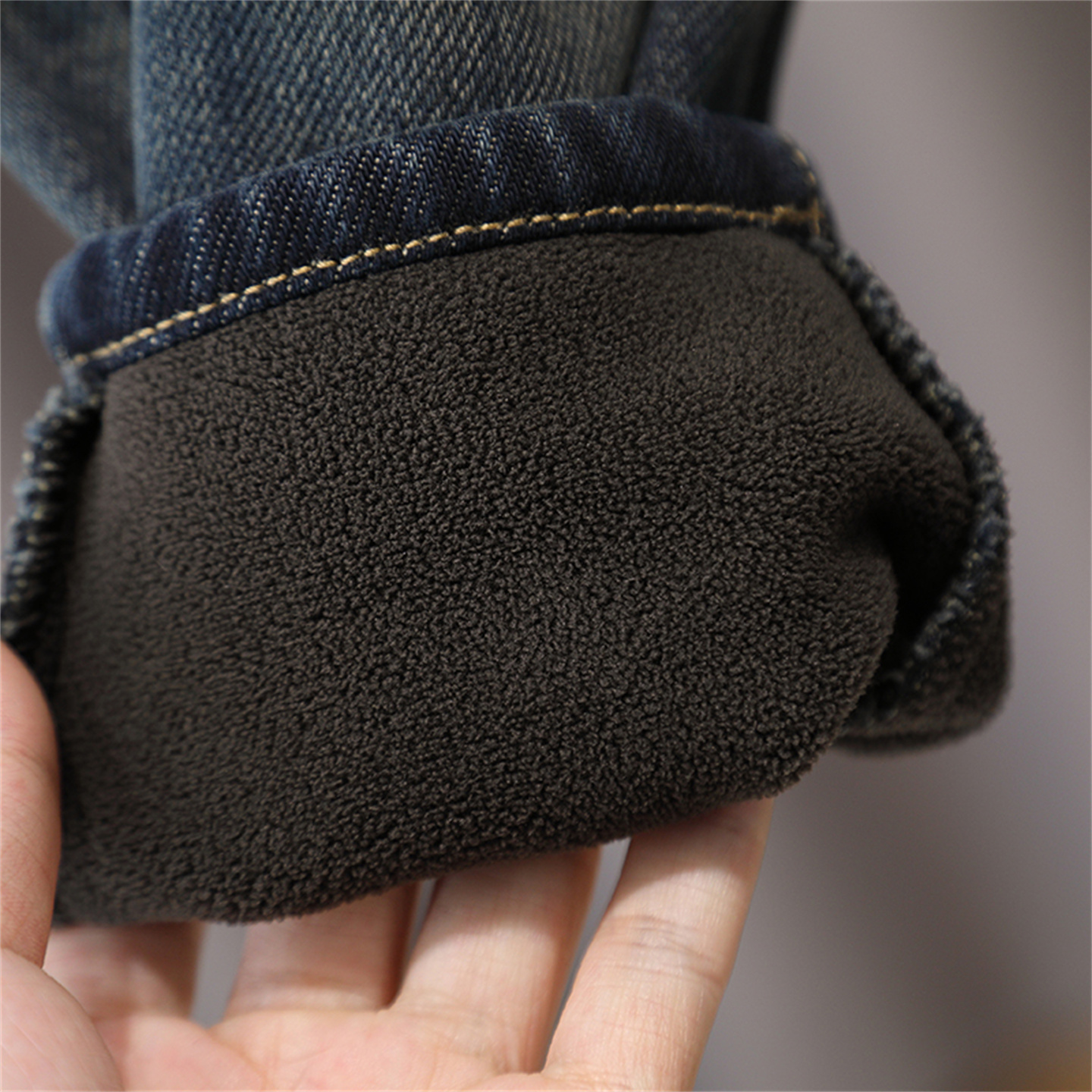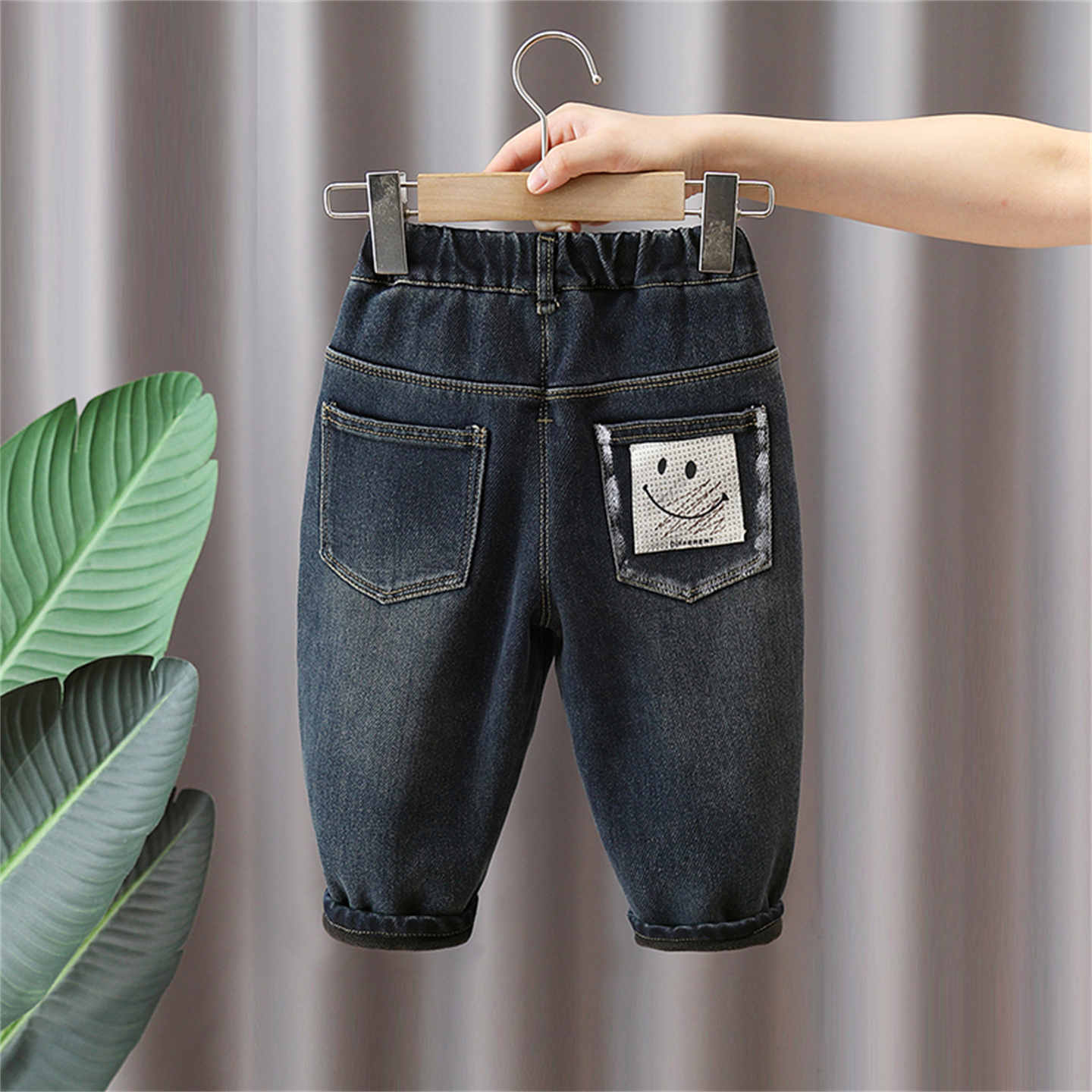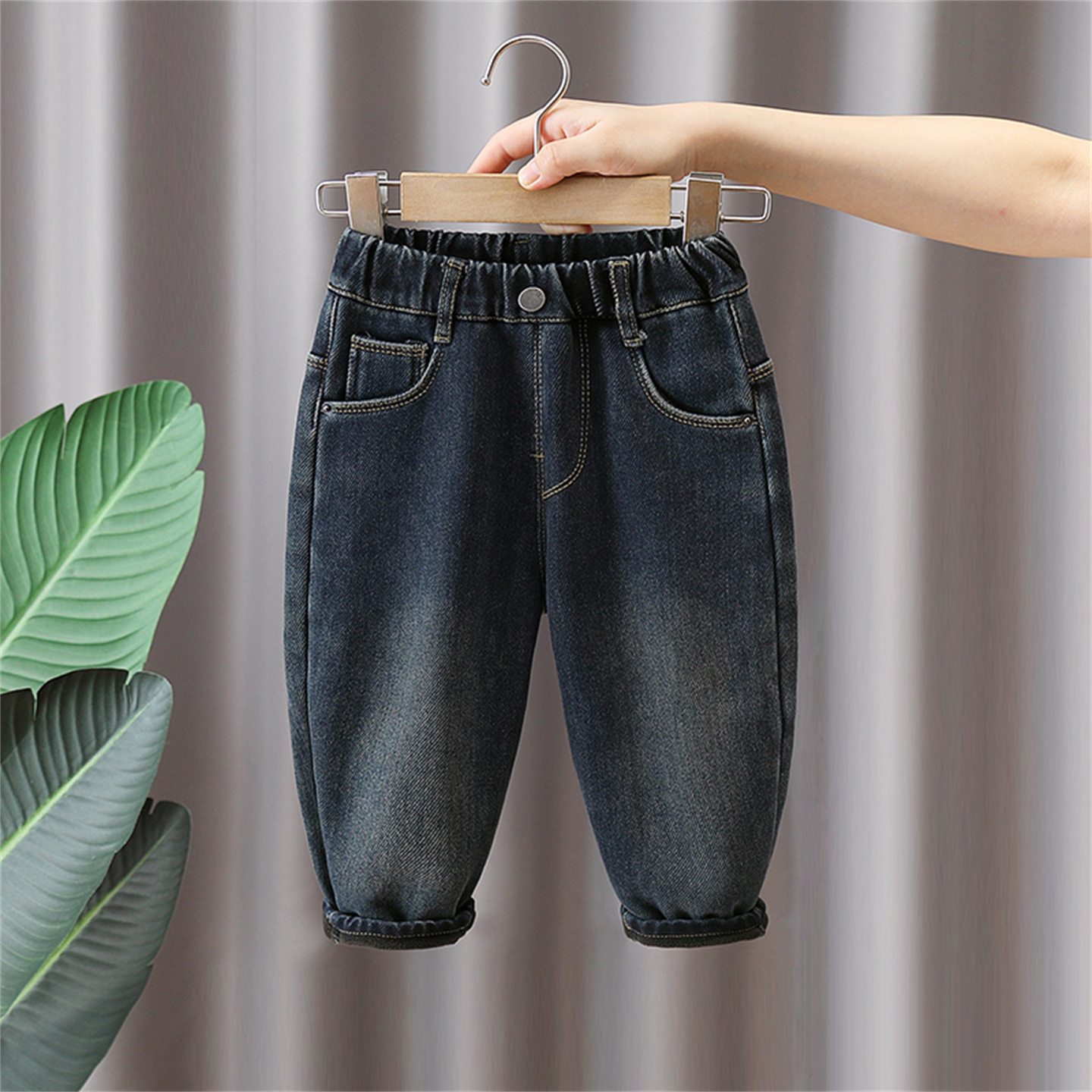 男童加绒裤子秋冬款2025新款儿童加厚直筒裤宝宝冬季一体绒牛仔裤