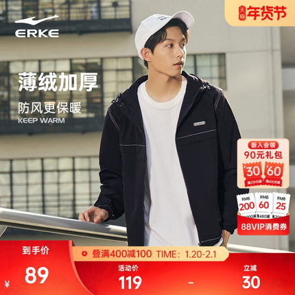 鸿星尔克外套男春秋男士运动加厚潮流防风衣男生连帽夹克男款上衣