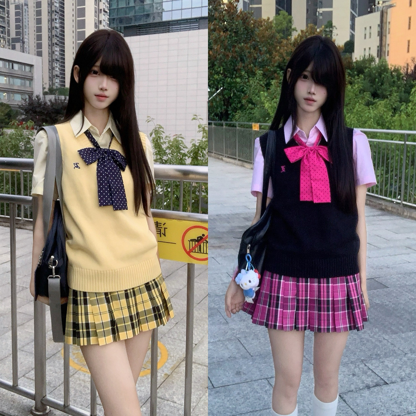 炽玫/烁芒/双子格瞳福掌柜原创正统jk亮黄色玫红色火龙果色辣妹裙