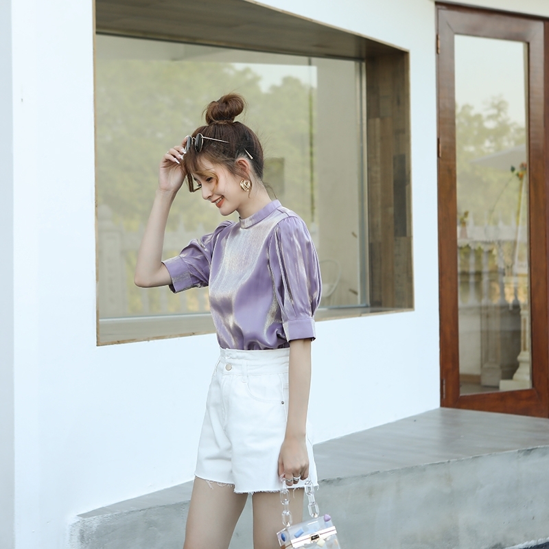 DuoYi/朵以高腰牛仔短裤毛边A字热裤宽松一粒扣36DX216058原249