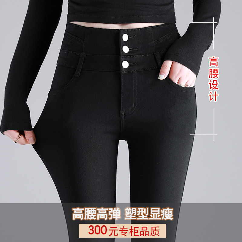 高腰打底裤女外穿秋冬加绒2025新款黑色紧身弹力春秋铅笔小脚黑裤