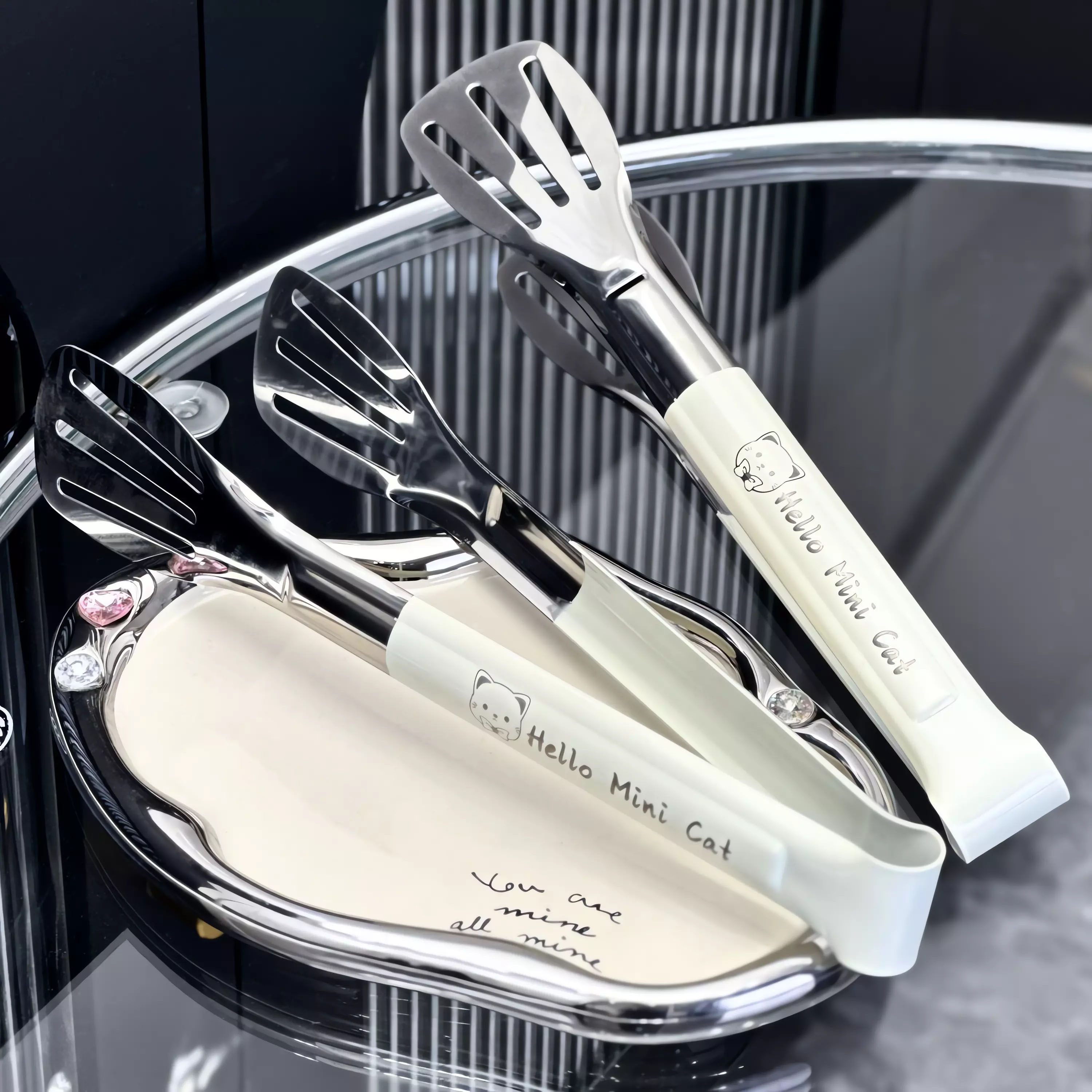 橙北银不锈钢长柄夹食品级厨房食物烧烤面包家用牛排烘焙烤肉用具