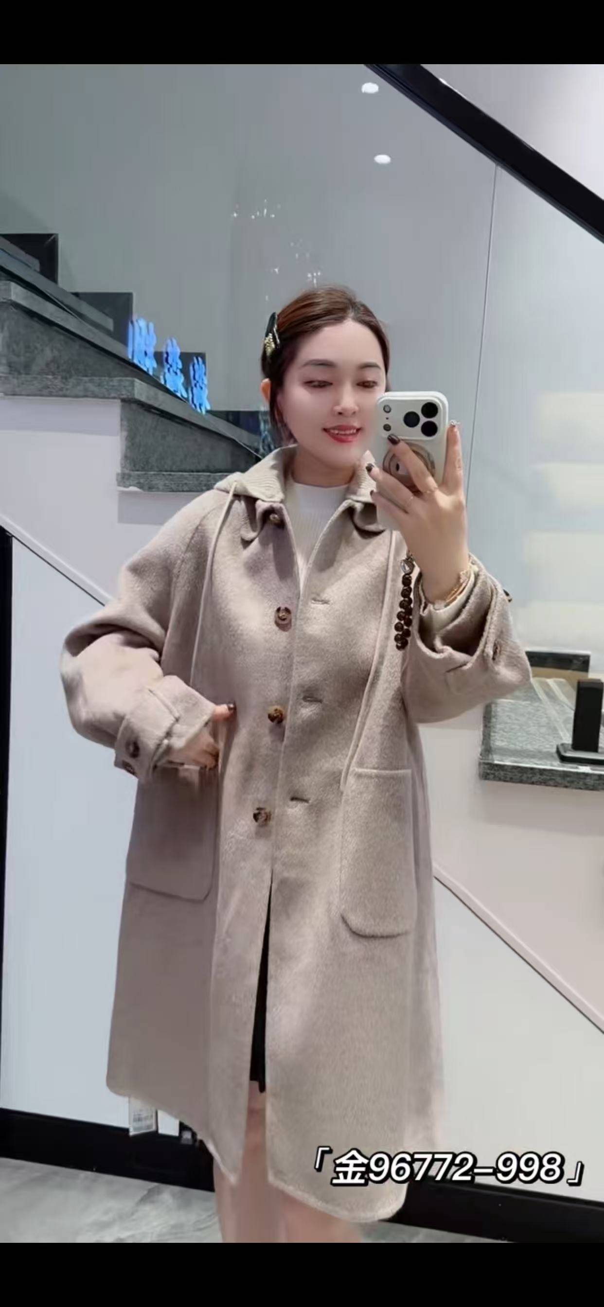 金影奇96772大码双面羊绒大衣女胖MM连帽羊毛呢子外套200斤女装新