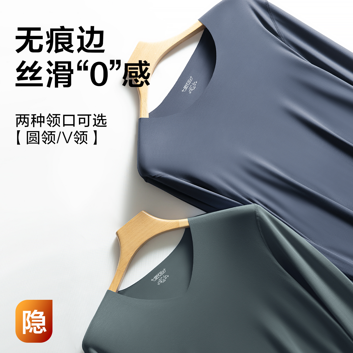 莫代尔100S高端无痕保暖内衣男士薄款打底内搭修身秋衣秋裤套装男