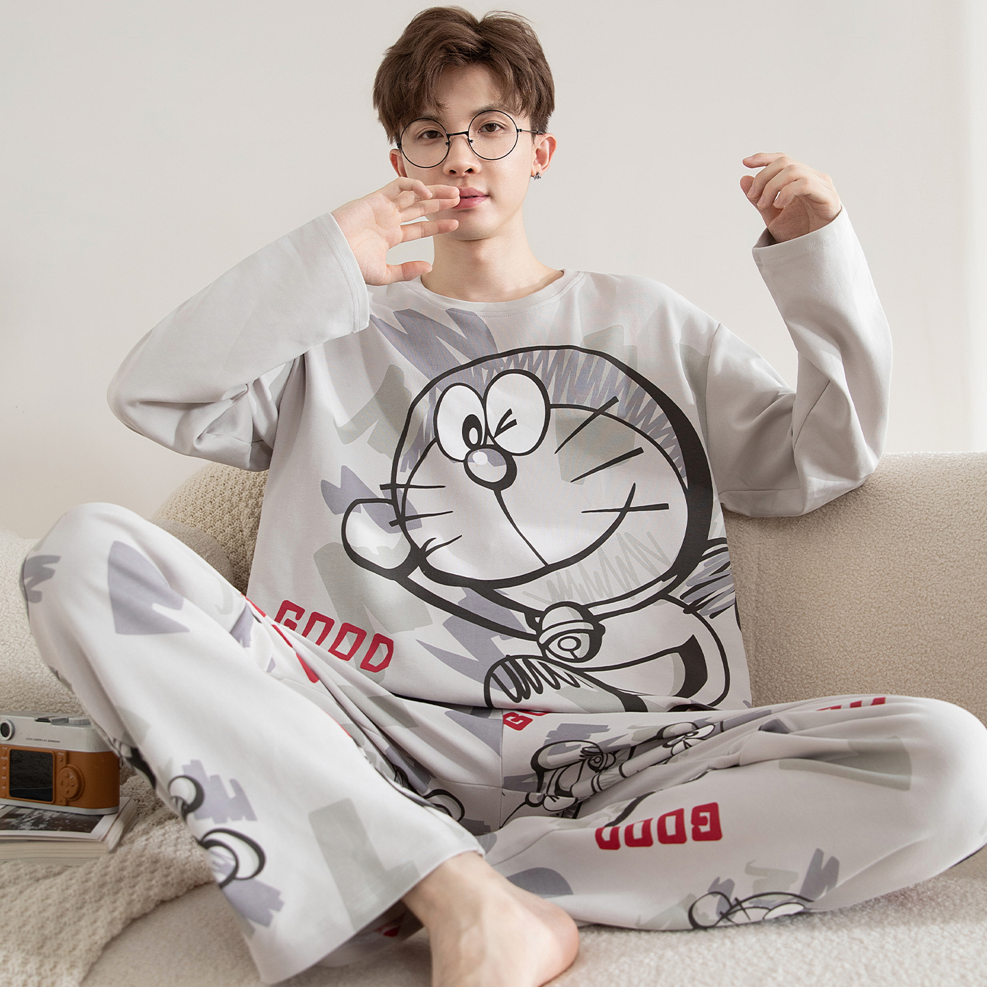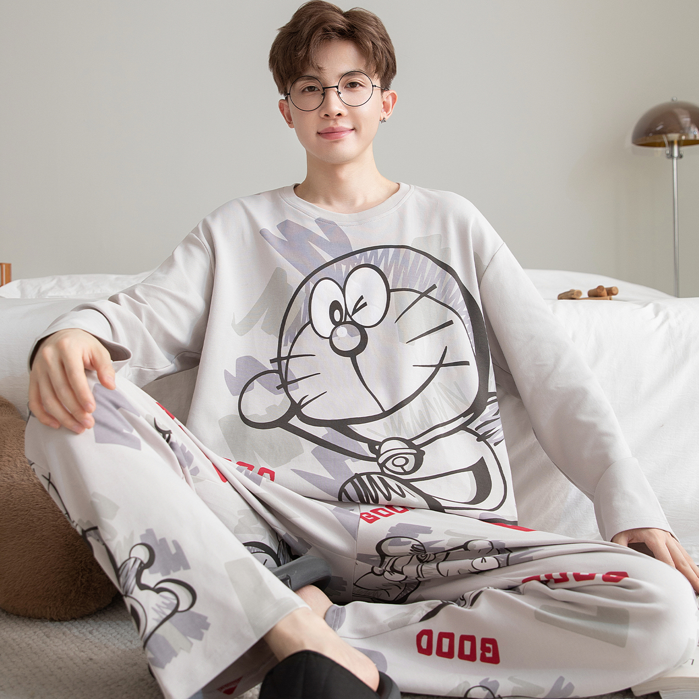 芬腾睡衣男士春秋季纯棉长袖大码男款青少年高初中学生大童家居服