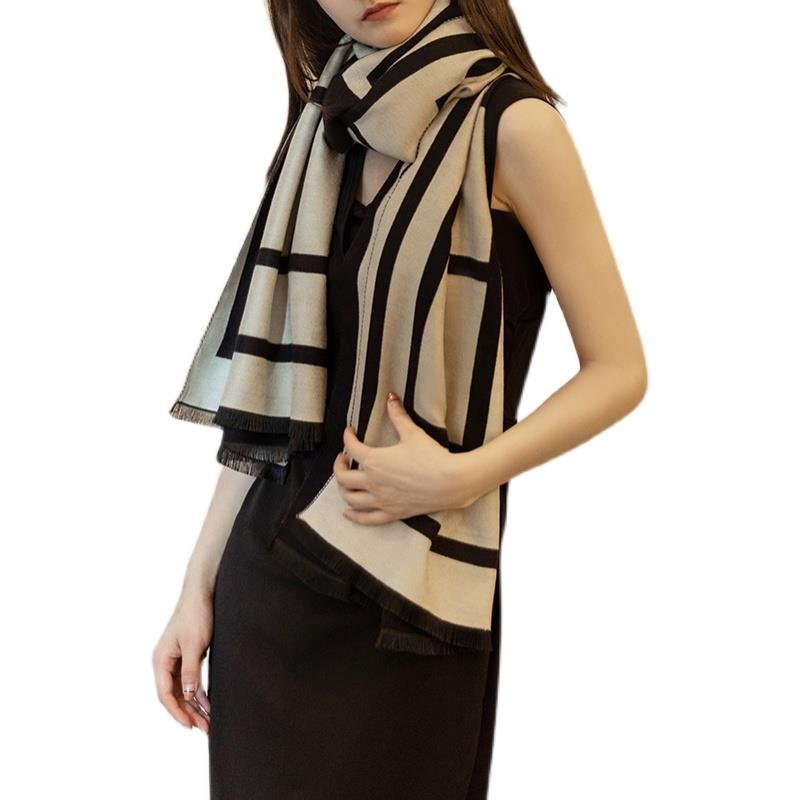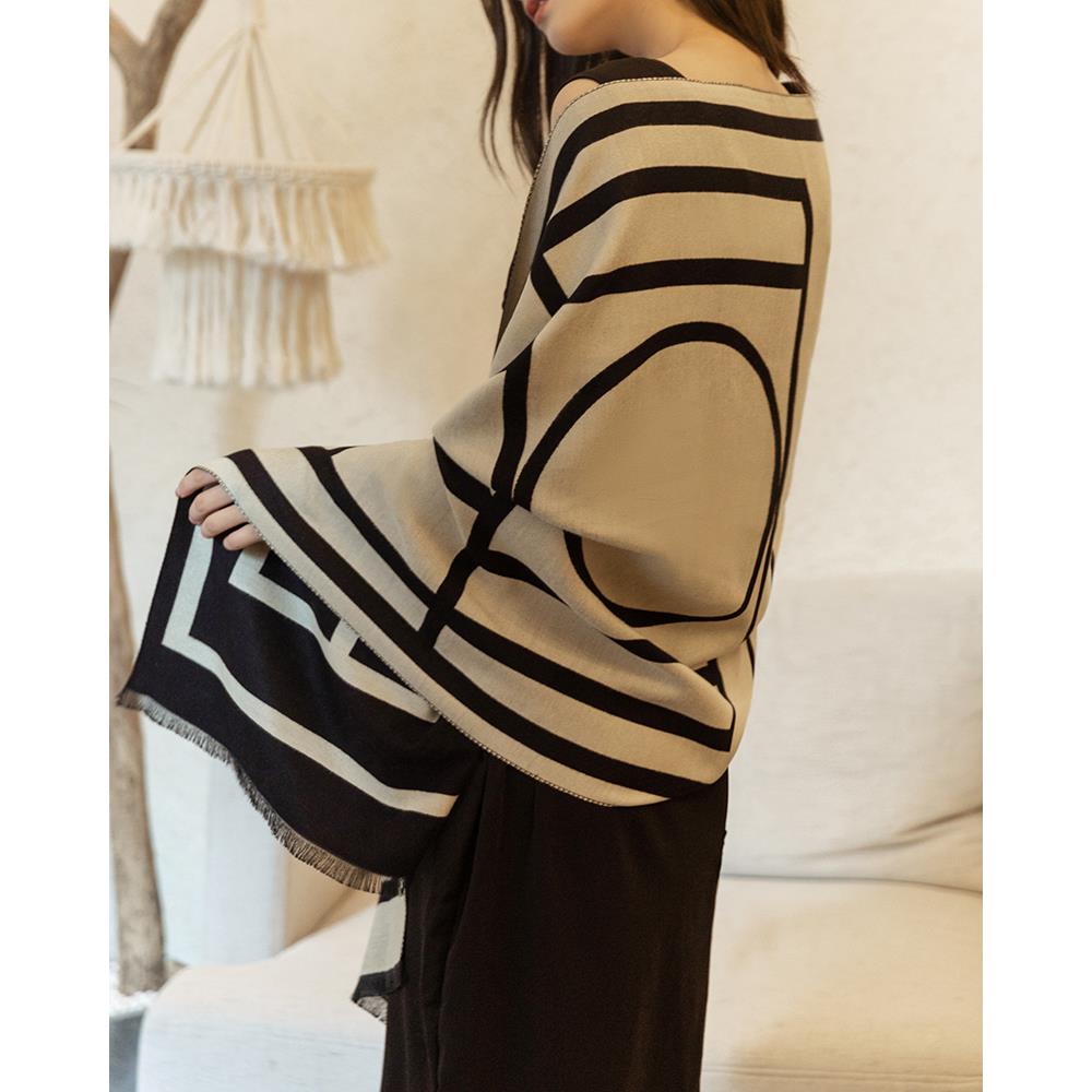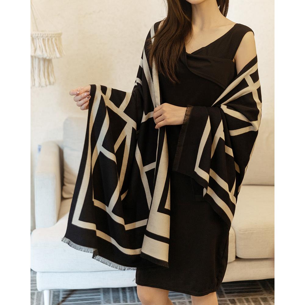秋冬几何图案围巾女保暖百搭披肩两用空调房办公室披风长围1006z