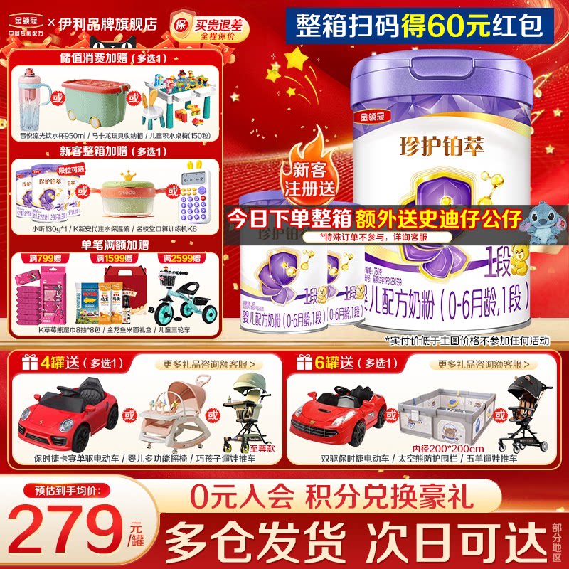 伊利金领冠珍护铂萃1段新生婴儿一段0-6月牛奶粉750g