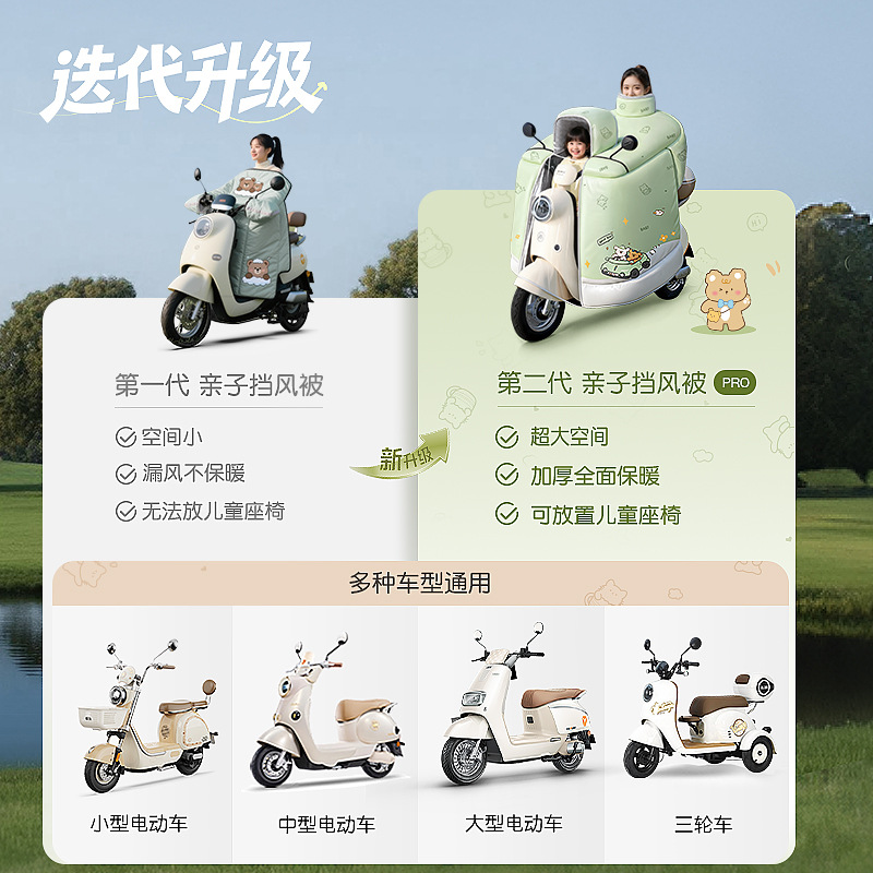 儿童亲子款电动车挡风被冬季加绒加厚电瓶摩托车防风防水2025