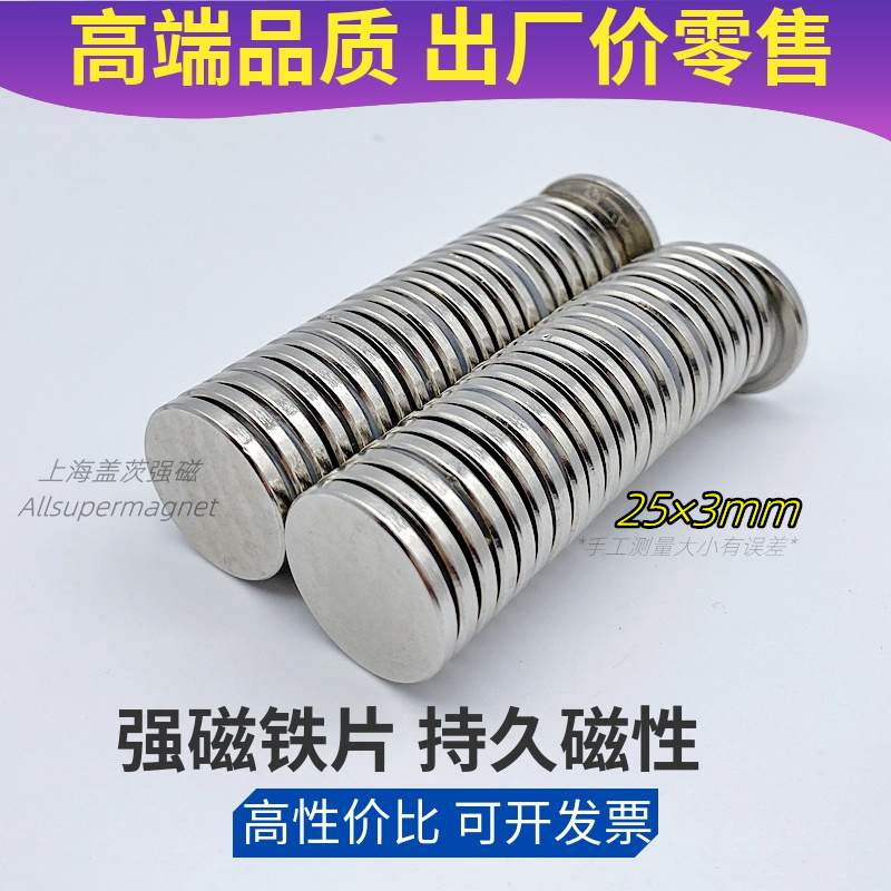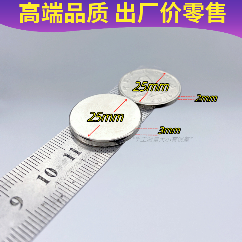 强力磁铁片一元硬币大小强磁吸铁石圆形钕铁硼磁钢永磁石D25x3mm