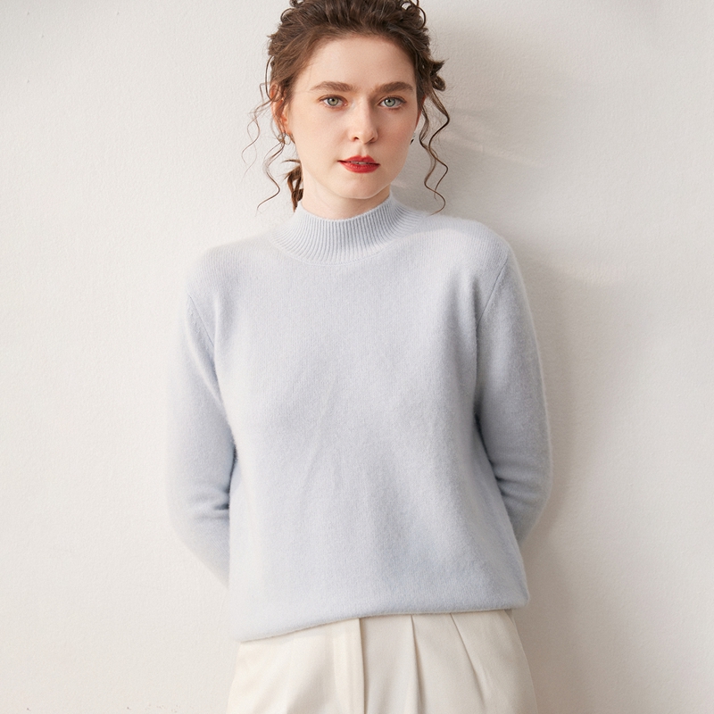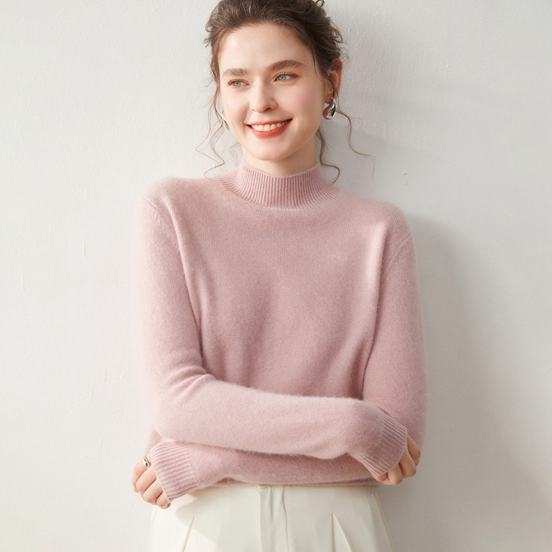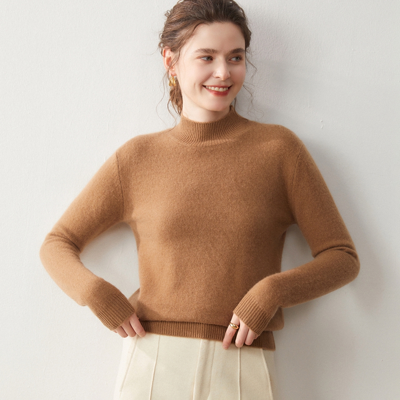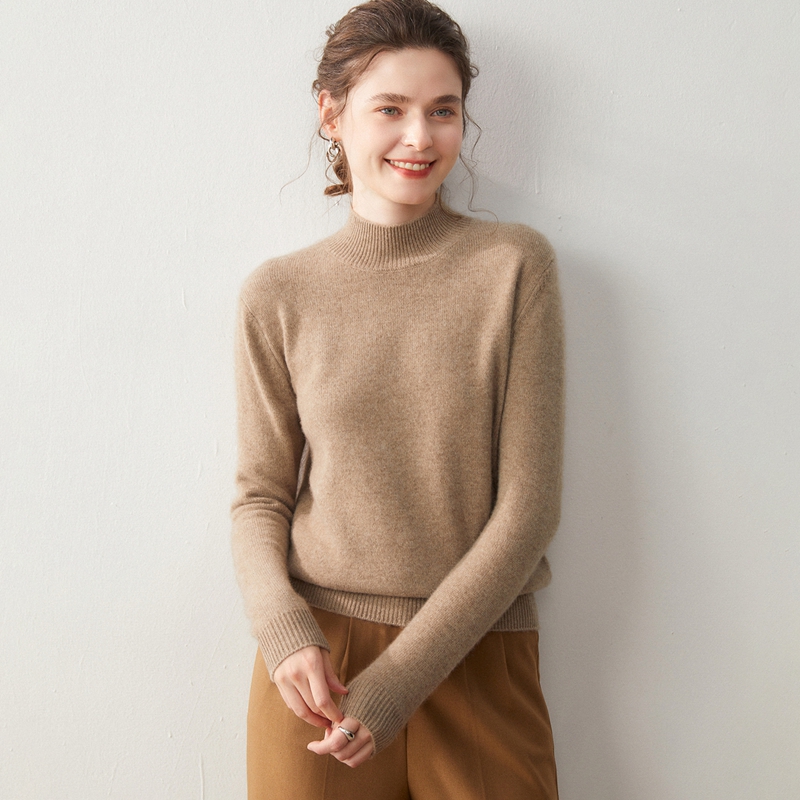 秋冬新款半高圆领山羊绒套头女士正肩厚纯色针织打底羊毛长袖毛衣