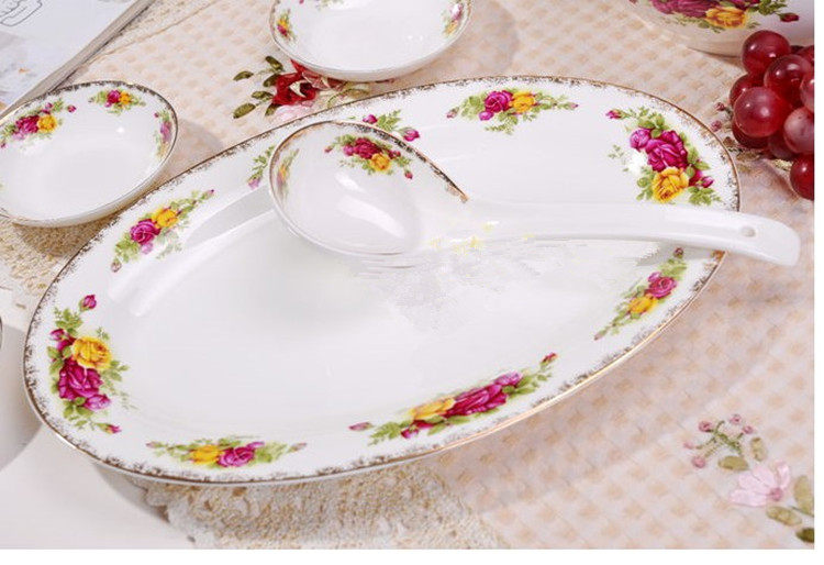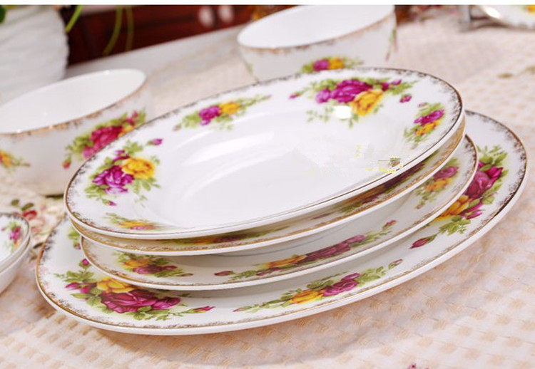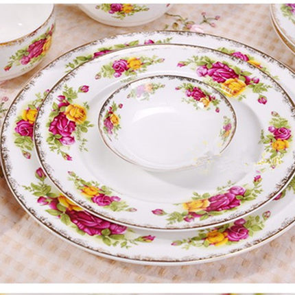 正品骨瓷铂金玫瑰餐具套装圆形盘碗配件景德镇陶瓷器花蓉件用散件