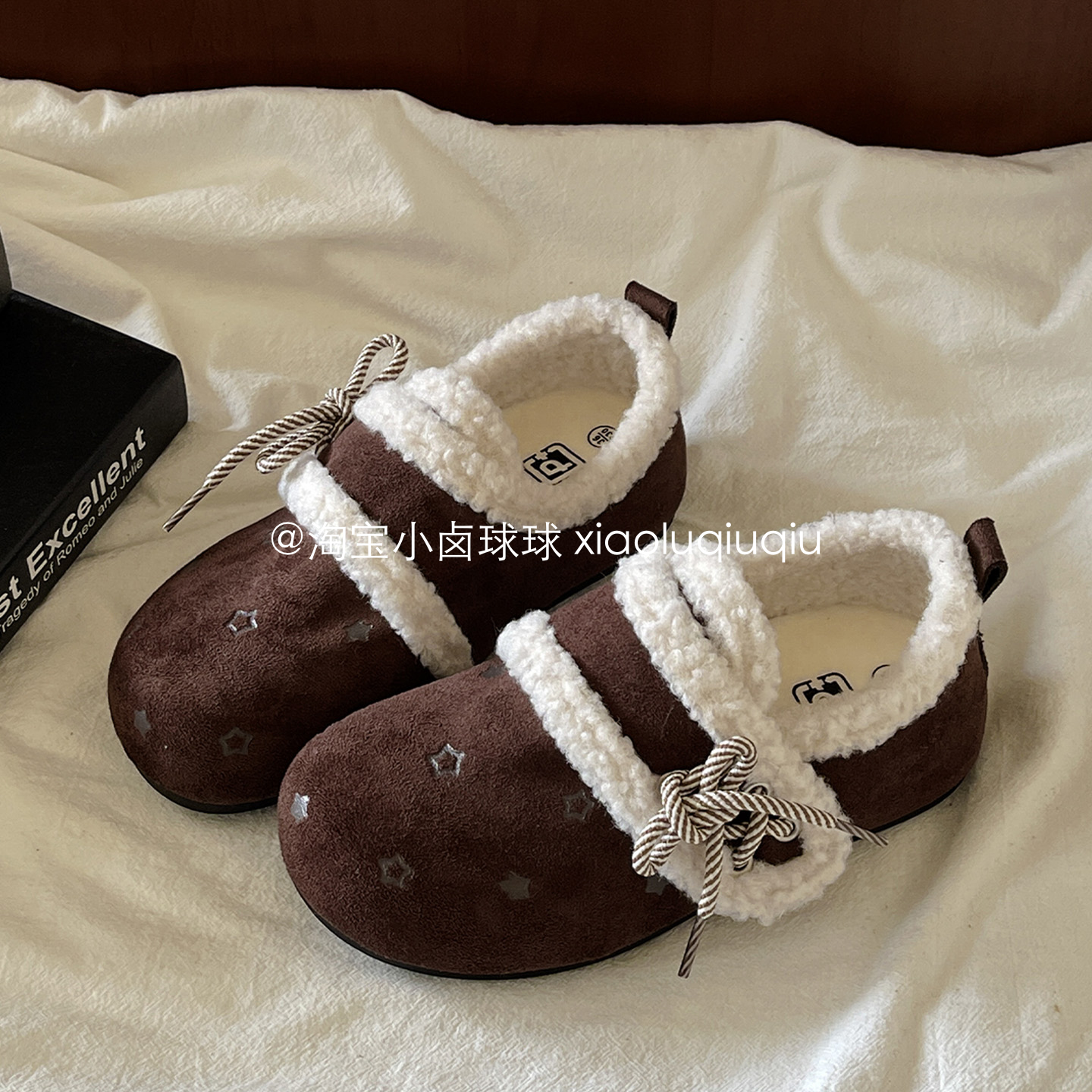 小卤球球冬季保暖毛毛鞋子加绒勃肯鞋一脚蹬休闲鞋二棉鞋2025新款