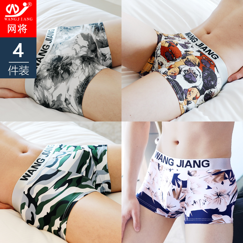 潮牌男士内裤男平角裤冰丝透气夏季薄款个性感潮流男生四角短裤头