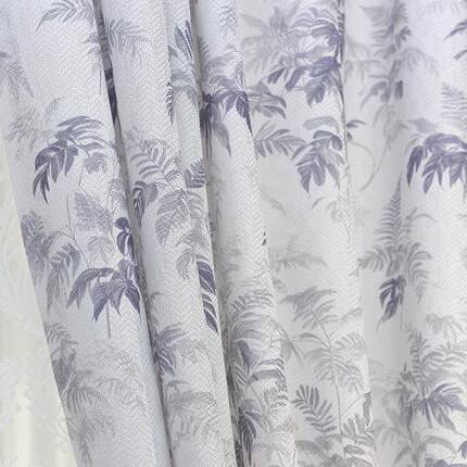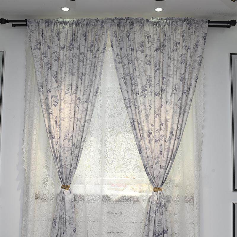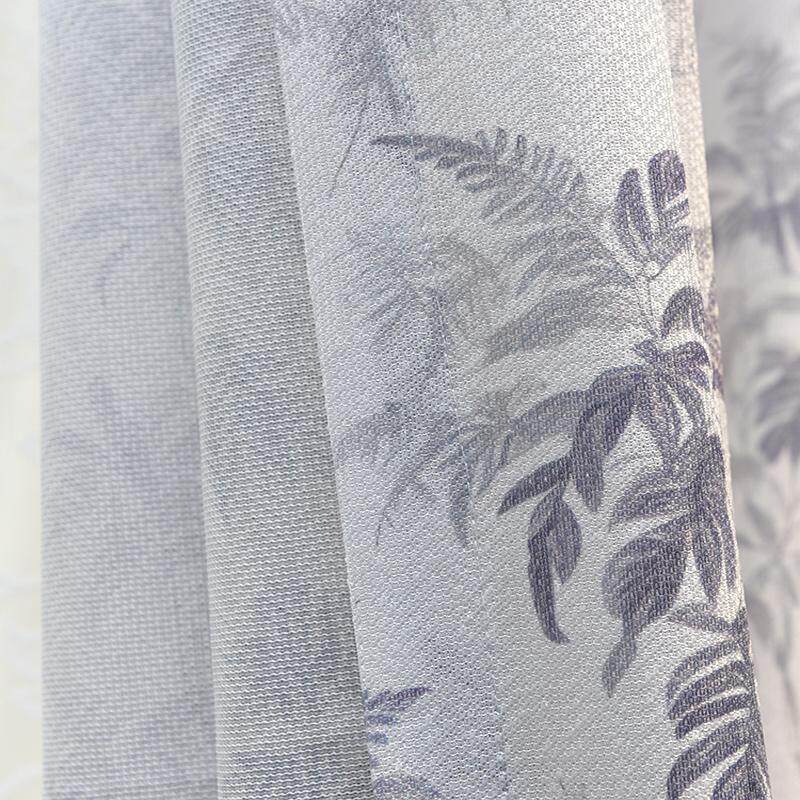新款北欧紫色花纱挂钩韩折打孔落地窗飘窗半透明半遮光定制窗纱