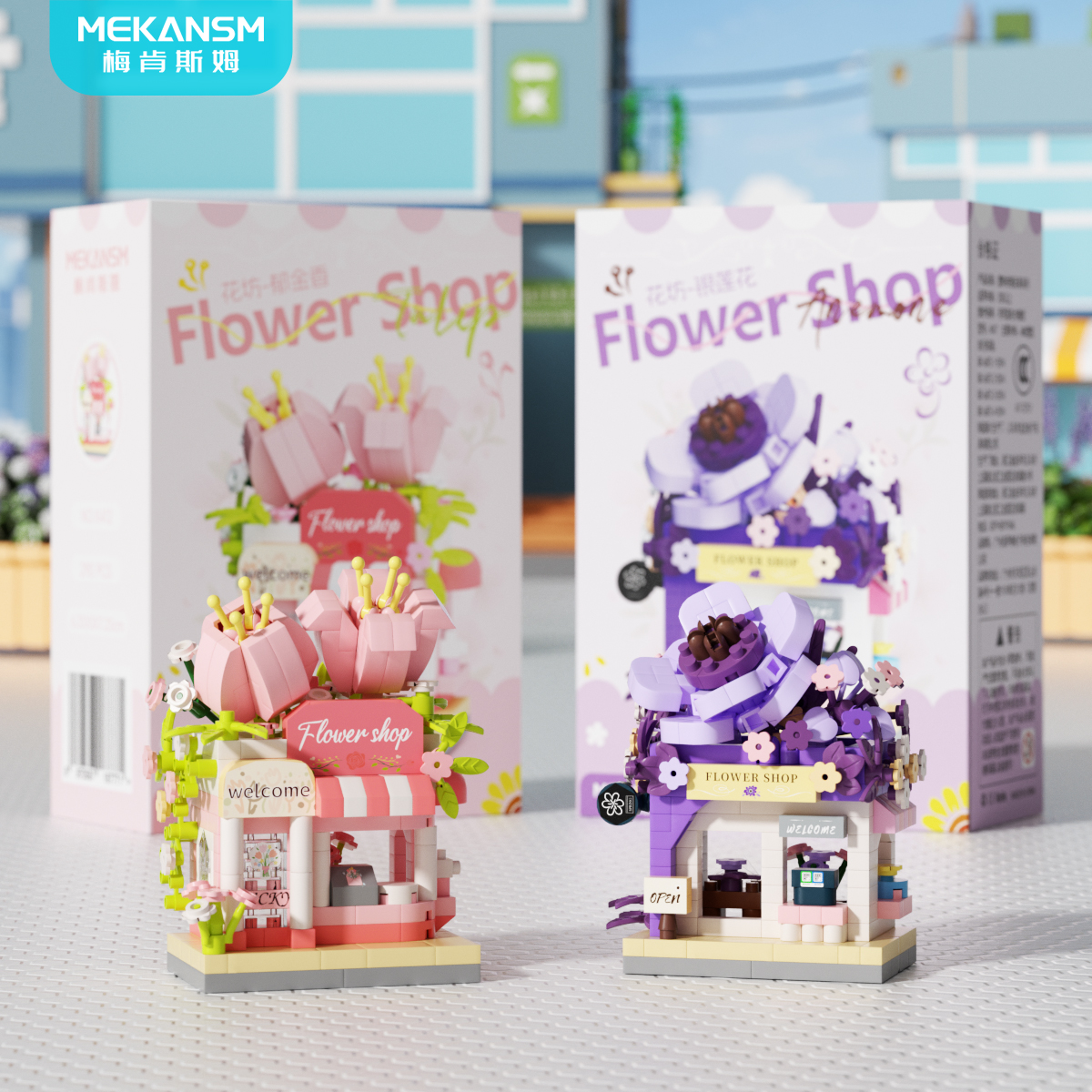 多巴胺花店街景贩卖花园摆件拼装积木玩具儿童男女孩生日礼物奖品