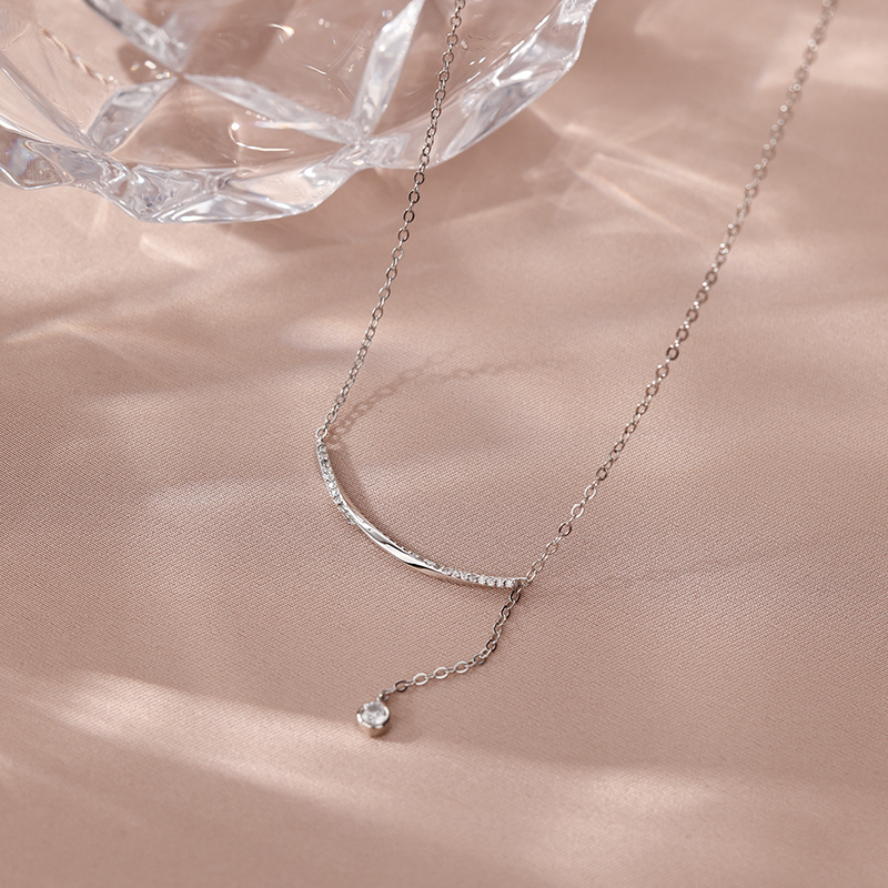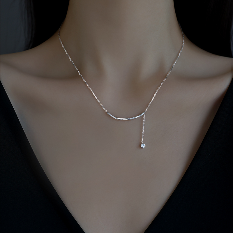 925纯银一字弧形简约项链女2025新款爆款轻奢微镶锆石锁骨链饰品