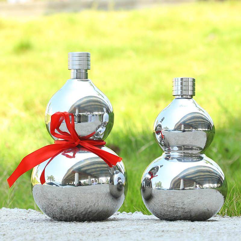 加厚304不锈钢葫芦酒壶3斤户外随身空白酒瓶2斤古典家用酒具水壶