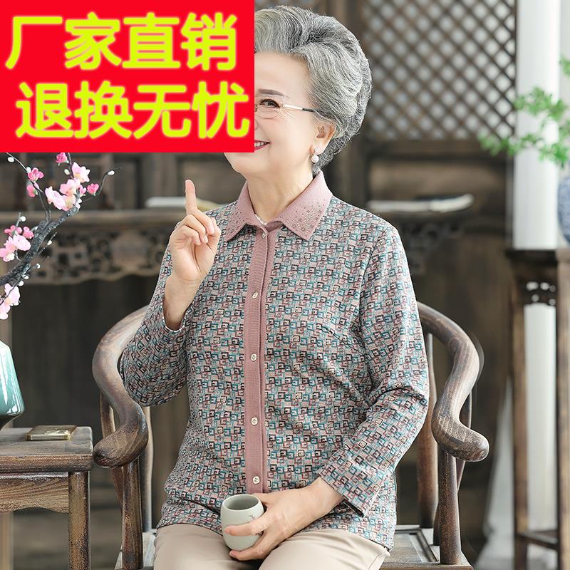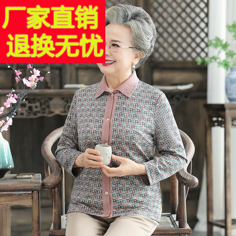 老年人秋装外套女奶奶春秋老人翻领衣服60岁70老太太休闲妈妈衬衫