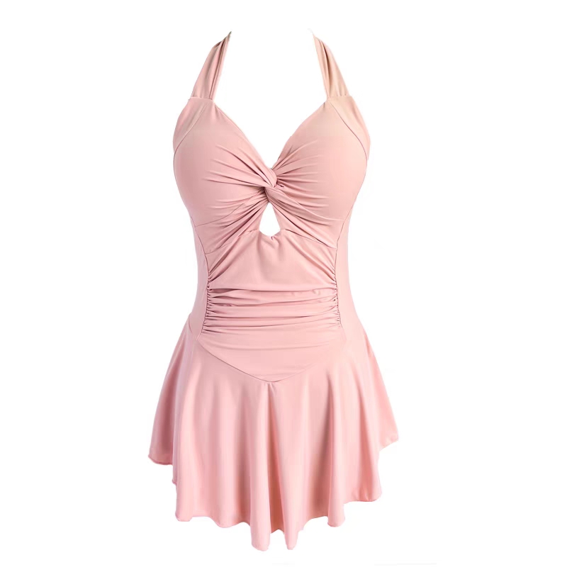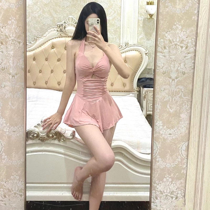 游泳衣女款夏2023新款网红风仙显瘦遮肚子黑色连体挂脖泡温泉泳装