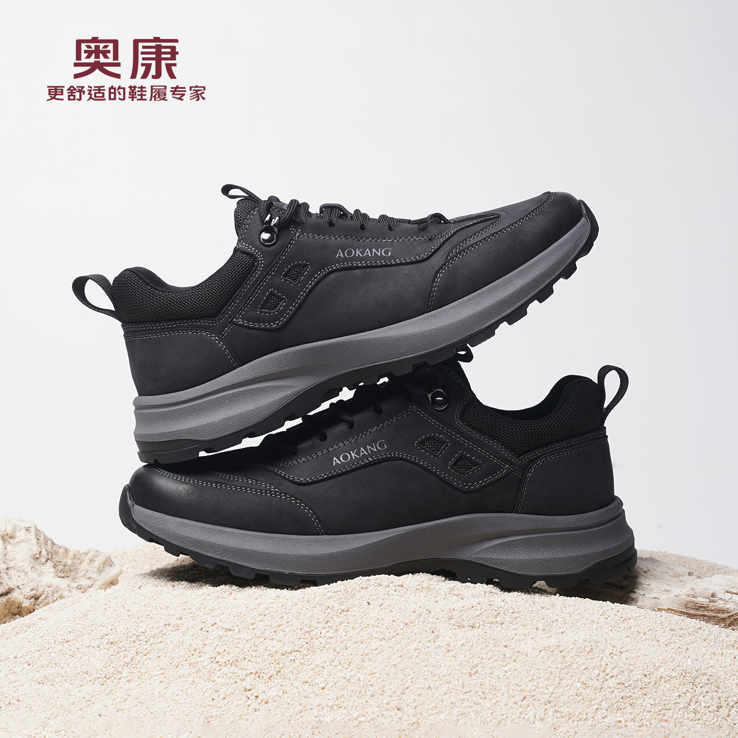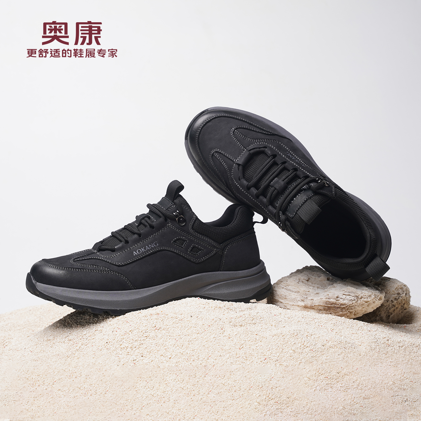 奥康 男鞋耐磨秋季新款复古百搭舒适厚底增高户外休闲鞋男士皮鞋L