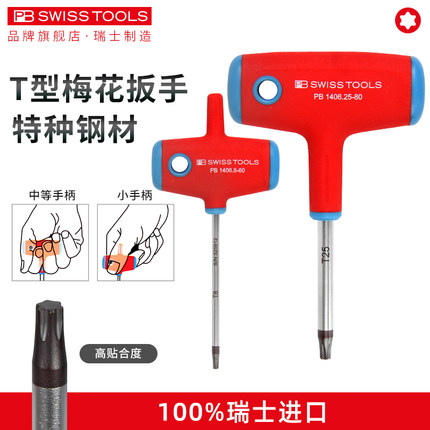 PB花型扳手T柄瑞士进口梅花内六角星型螺丝刀T5/6/7/8/9/10/15/20