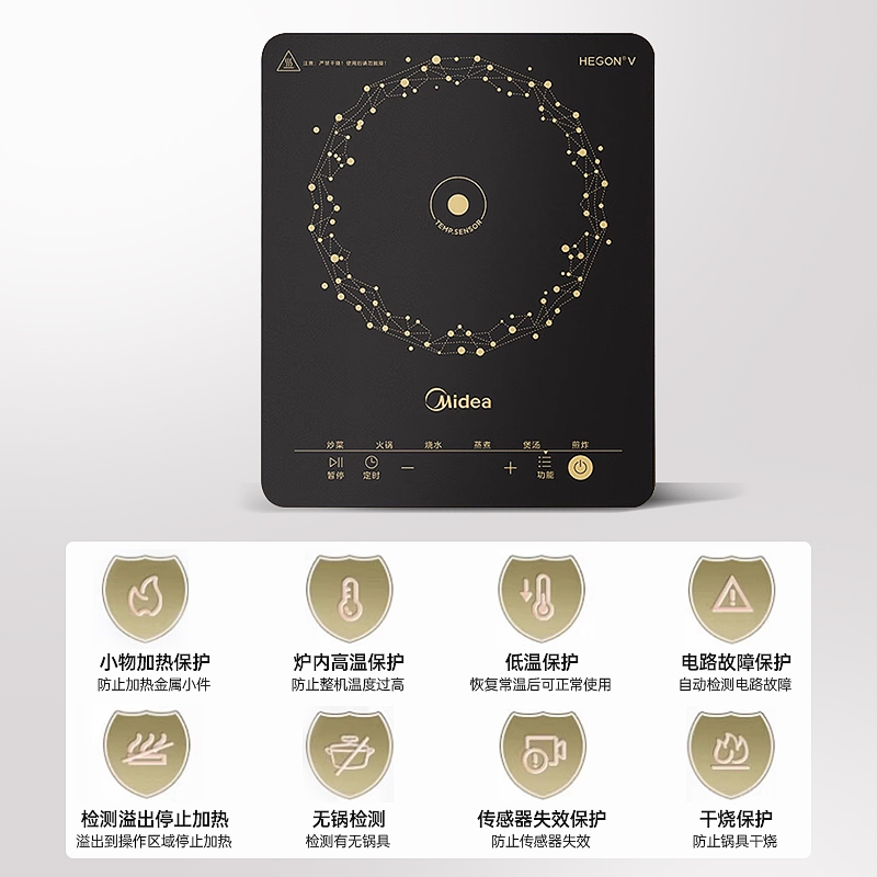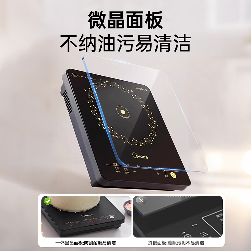 美的智能电磁炉家用大火力一体火锅2200W炒菜专用大功率电磁灶M1