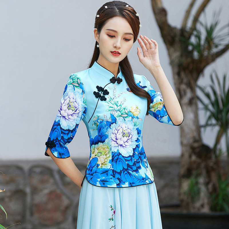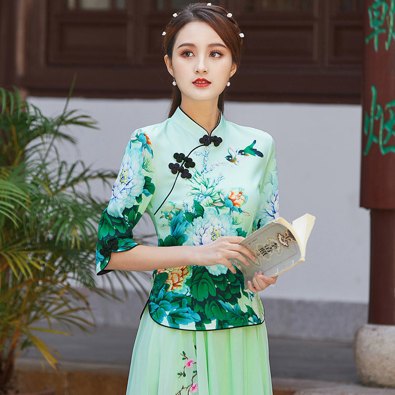 民国女装唐装套装两件套春装复古中式茶服汉服改良中国风旗袍上衣