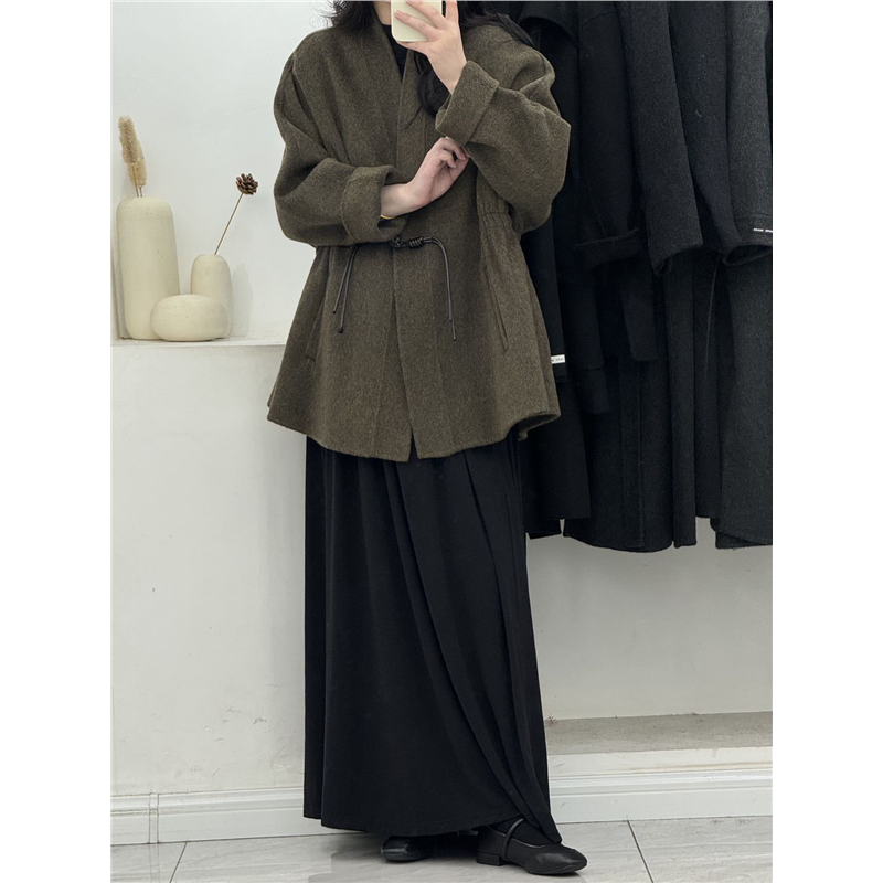 韩国定制2025秋冬新款双面羊绒短款双面羊毛呢V领大衣收腰外套冬